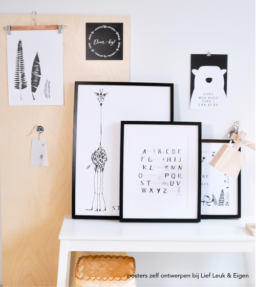 Posters maken! Dat kan je nu zelf doen bij Lief Leuk & Eigen. Zo kan je je kinderkamer of babykamer (of woonkamer, of hal, of keuken) opleuken met een mooie posterwand. Je kan kiezen uit leuke verschillende formaten zodat je een mooie combinatie kan maken. Ook grote posters van 50x70 cm zijn mogelijk (voor maar € 30,50). Wij hebben al een paar posters voor je ontworpen maar je kunt ook zelf aan de slag. Maak een hele eigen poster. Bijvoorbeeld met een mooie tekst of slogan. Leuk om te doen!