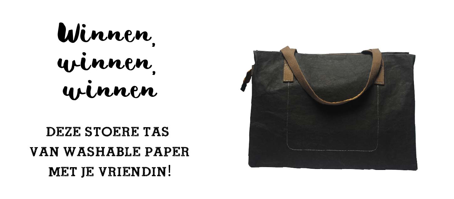 We mogen 2 washable paper tassen Eucalyptus weggeven in de kleur zwart (van € 49,95). Een handige all purpose tas, waar je echt heel veel in kwijt kan. We geven er 2 weg - aan de winnaar en haar vriendin. Wat moet je doen?